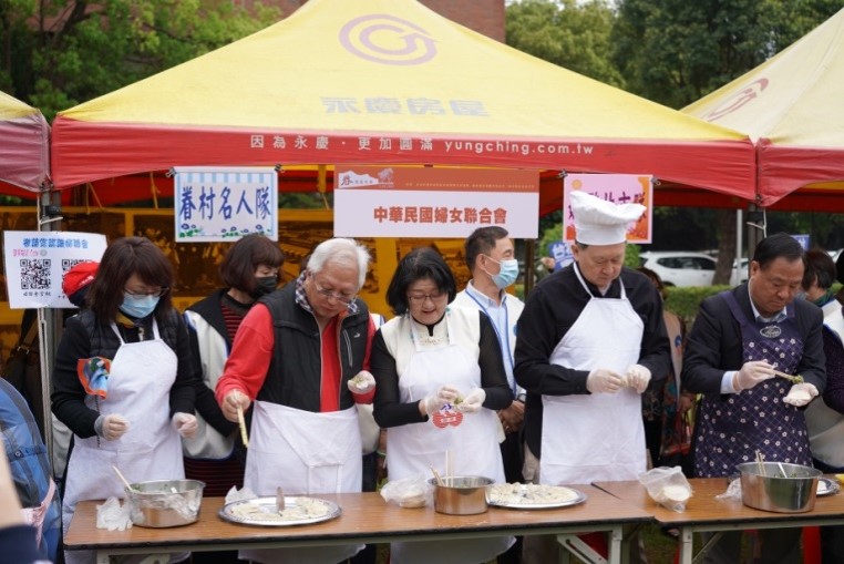 「眷戀嘉年華」盛會,首先登場的是「眷念市集」活動,邀請全台有14家分店的「荖子鍋」創辦人胡哥,現場教民眾手作「胡哥水餃」,「高雄市國軍眷村文化發展協會」理事長趙怡、婦聯會主委雷倩等眷村二代人士,紛紛捲起衣袖、小試身手包起水餃來!