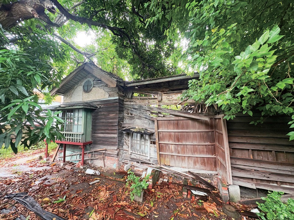 8 月這天兼程繞到員林來尋訪魏家舊日時光的痕跡。那幢位在育英路與三民東街的魏崢老家已成廢墟,四坡水形式的屋頂已經塌了大半,院子裡的雜草竟與魏崢童年記憶裡的芒果樹、麵包樹一樣茂密。